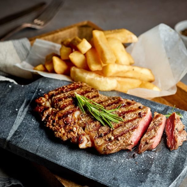 Our steaks are cooked to perfection over a wood-fired grill. This gives them a unique smoky flavor that is sure to tantalize your taste buds.