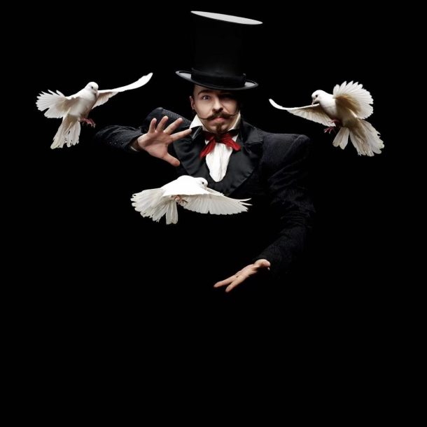 Scopri i nostri eventiNel silenzio profondo della notte, sotto un cielo nero come velluto, il mistero prende forma. Un elegante illusionista appare al centro della scena, con cilindro nero e sorriso enigmatico. Con un semplice gesto della mano, il tempo sembra fermarsi: tre colombe bianche emergono nell’aria, librandosi leggere intorno a lui come simboli di magia e meraviglia. Tra ombre e luce, lo spettacolo trasforma la realtà in illusione e invita gli spettatori a entrare in un mondo dove tutto è possibile. È l’inizio di una serata fatta di sorpresa, eleganza e incanto — un’esperienza che unisce spettacolo, atmosfera e emozione.